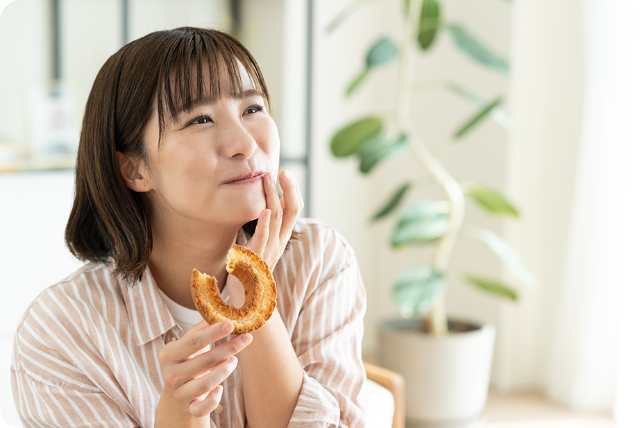 甘いものを食べると快楽を感じるホルモンが分泌されるため、その快感に依存しやすくなります。依存してしまう、本当に甘いものが食べたいわけではなくても、頭より先に体が反応して甘いものを摂取してしまうことも。甘いものが食べたくなったら一旦立ち止まり、本当に食べたいのか考えてみましょう。どうしても何かが食べたい場合は、甘いものをナッツやチーズ、無糖ヨーグルト、おしゃぶり昆布などに代えてみるのもおすすめです。