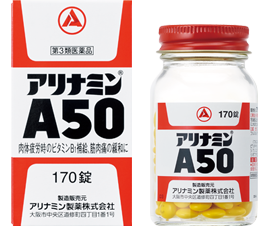 - <ビタミンB群を配合し、体がだるいといった疲れに効くアリナミン製品の錠剤>