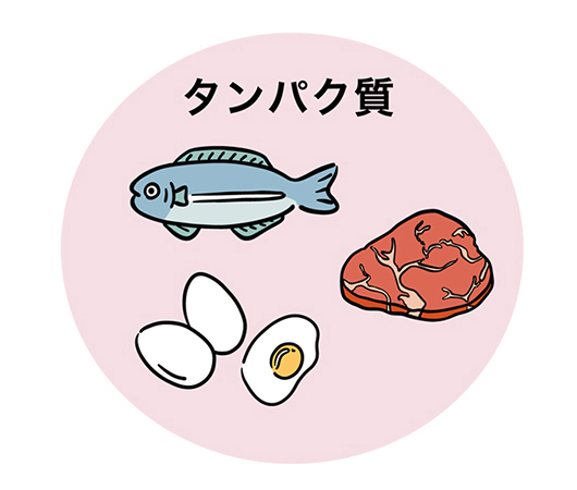 タンパク質が多く含まれている食材として、肉や魚、卵、牛乳・乳製品、豆類など、主菜(おかず)に使うことの多い食材が挙げられます。「良質なタンパク質」を摂取するとよいといわれることがありますが、「良質」か否かについては含まれているアミノ酸によって決まります。
