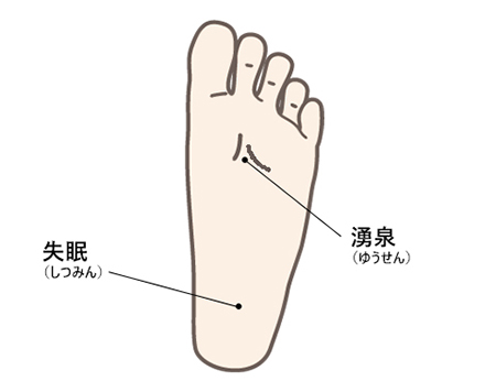 かかと中央のわずかに凹んだところにあるツボです。失眠は即効的な効果が期待される奇穴の一つで、冷えやむくみを緩和する他、「失った眠りを取り戻す」という名前のとおり、不眠の改善によく用いられます。