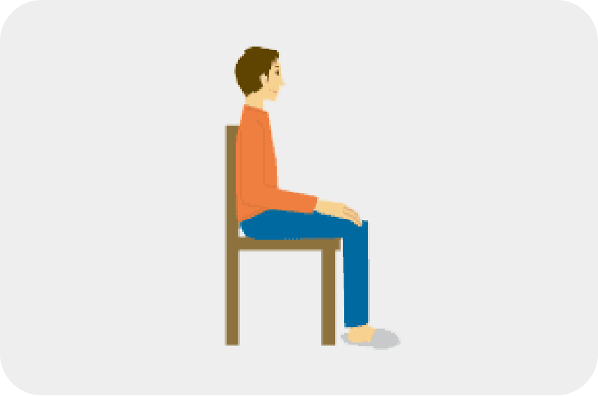 腰かけたときに股関節、膝関節が90度に曲がり、足裏が床にぴったり着いている高さがよい。長い時間座り続けるときは脚を組み、ときどき組み替えると腰への負担が軽くなります。