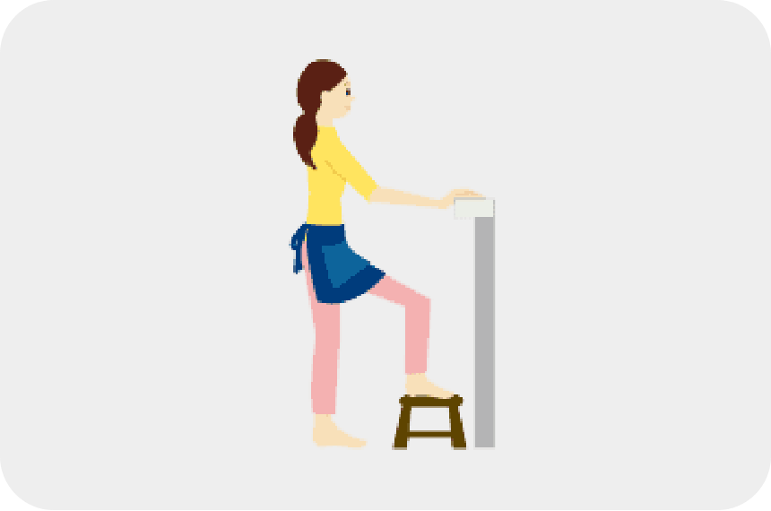 調理台に前かがみになりがちです。高さ15cmほどの台を用意し、片足ずつ交互に載せて作業をすれば、腰や背中の筋肉の緊張が和らげられます。