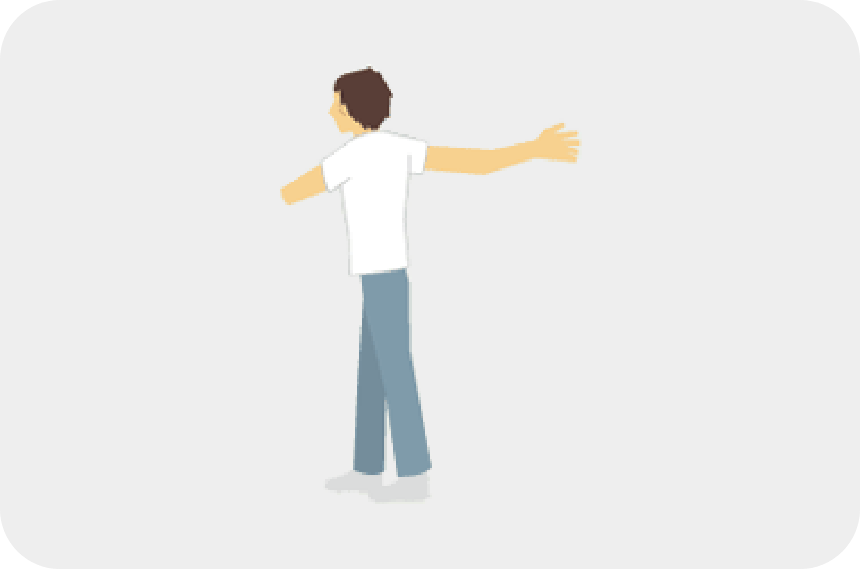 両足を肩幅より少し広く立ち、両腕を肩の高さまで上げて左右に大きく振りながら腰をひねります。