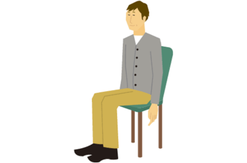 ❶背すじを伸ばしていすに座り、目を閉じます。