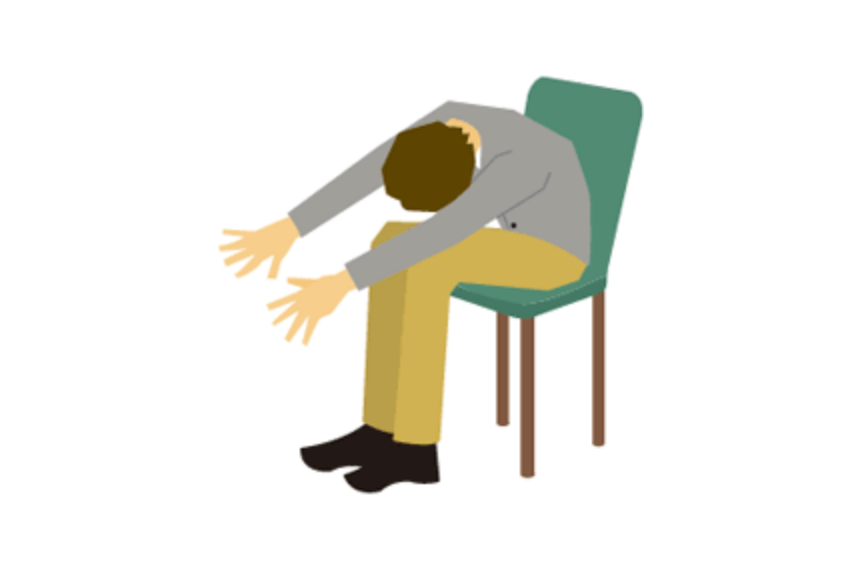 ❷息を吐きながら、できるだけ頭を前に倒し、1秒間静止します。
