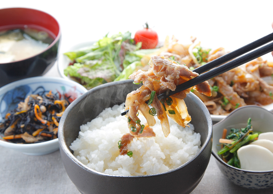 おすすめは、主食・主菜・副菜の揃った和食メニューです。具体的には、エネルギー源になるご飯、焼き魚やしょうが焼きなどのおかず、野菜を使った煮物、お味噌汁などを組み合わせたメニューを選ぶとよいでしょう。