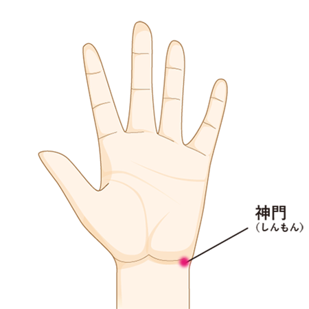 リラックス効果のあるツボを押してみるのもよいでしょう。例えば、緊張をほぐし、リラックスさせるツボである「神門(しんもん)」