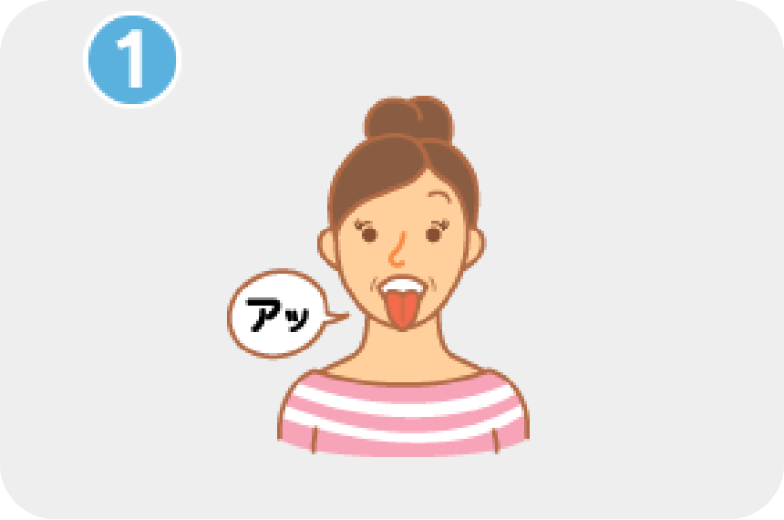 ❶「アッ」と声を出しながら、できるだけ大きく舌を突き出します。これを30回繰り返しましょう。