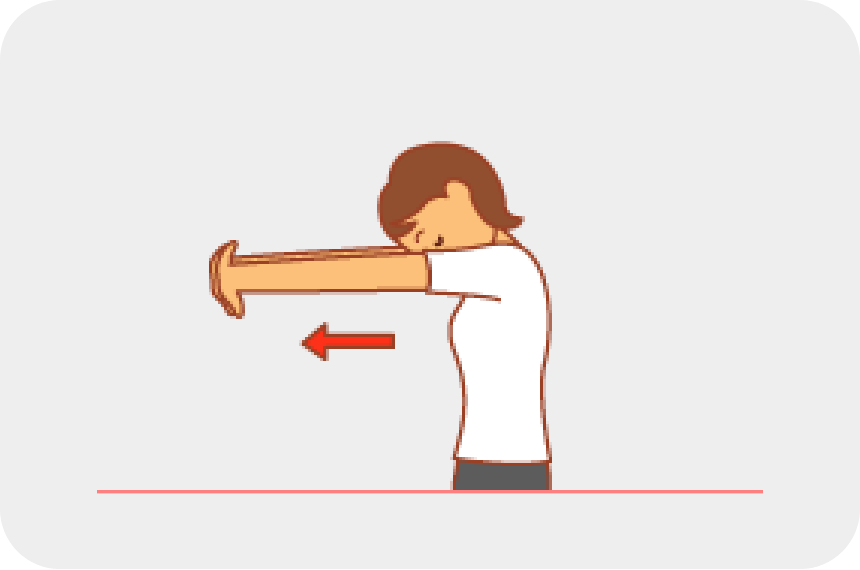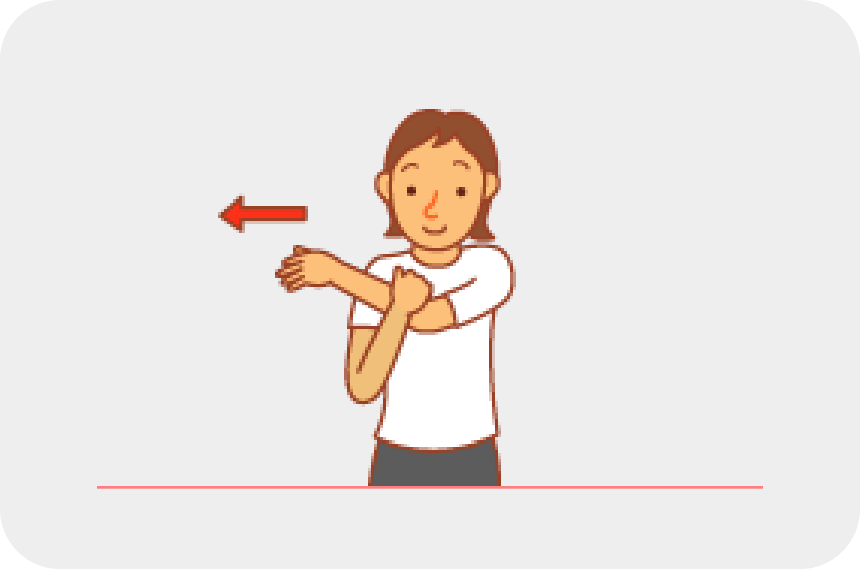 ❷片手を横に向け、反対の手で横にした手のひじをカラダのほうに引っぱるようにする。
