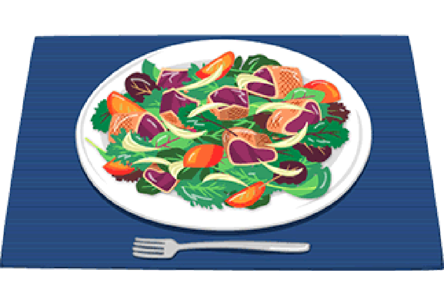 鰹に含まれる鉄とビタミンB12は、激しい運動で起きやすくなる貧血の予防に効果的。運動する時には意識して摂りたい栄養素の1つです。他にも、筋肉痛の軽減や筋組織の損傷予防に欠かせないBCAA(分岐鎖アミノ酸)が豊富に含まれているのも鰹の優れたポイントです。栄養価の高いベビーリーフやクエン酸が含まれるトマトとあわせていただくことで疲労回復にも役立ちます。